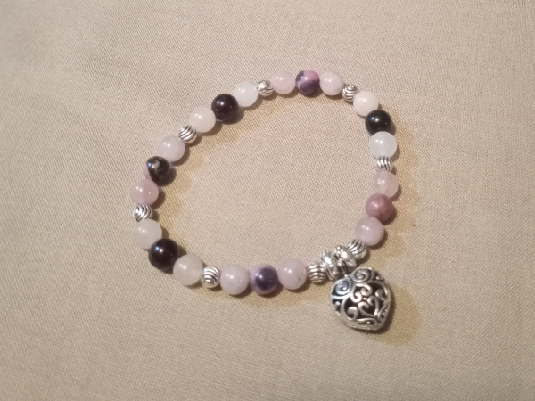 Made with rose quartz, rhodanite, pink opal, and garnet, this bracelet helps one to find love within themself and heal from emotional loss and pain.